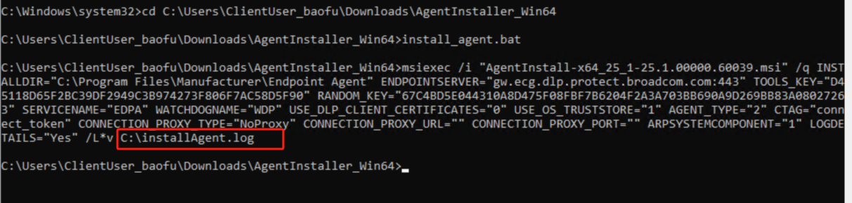 - クライアント上で解凍し、管理者コマンドプロンプト上で、install_agent.batを実行します