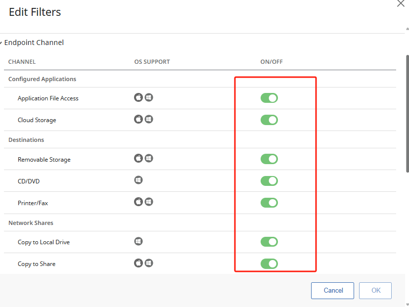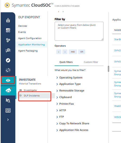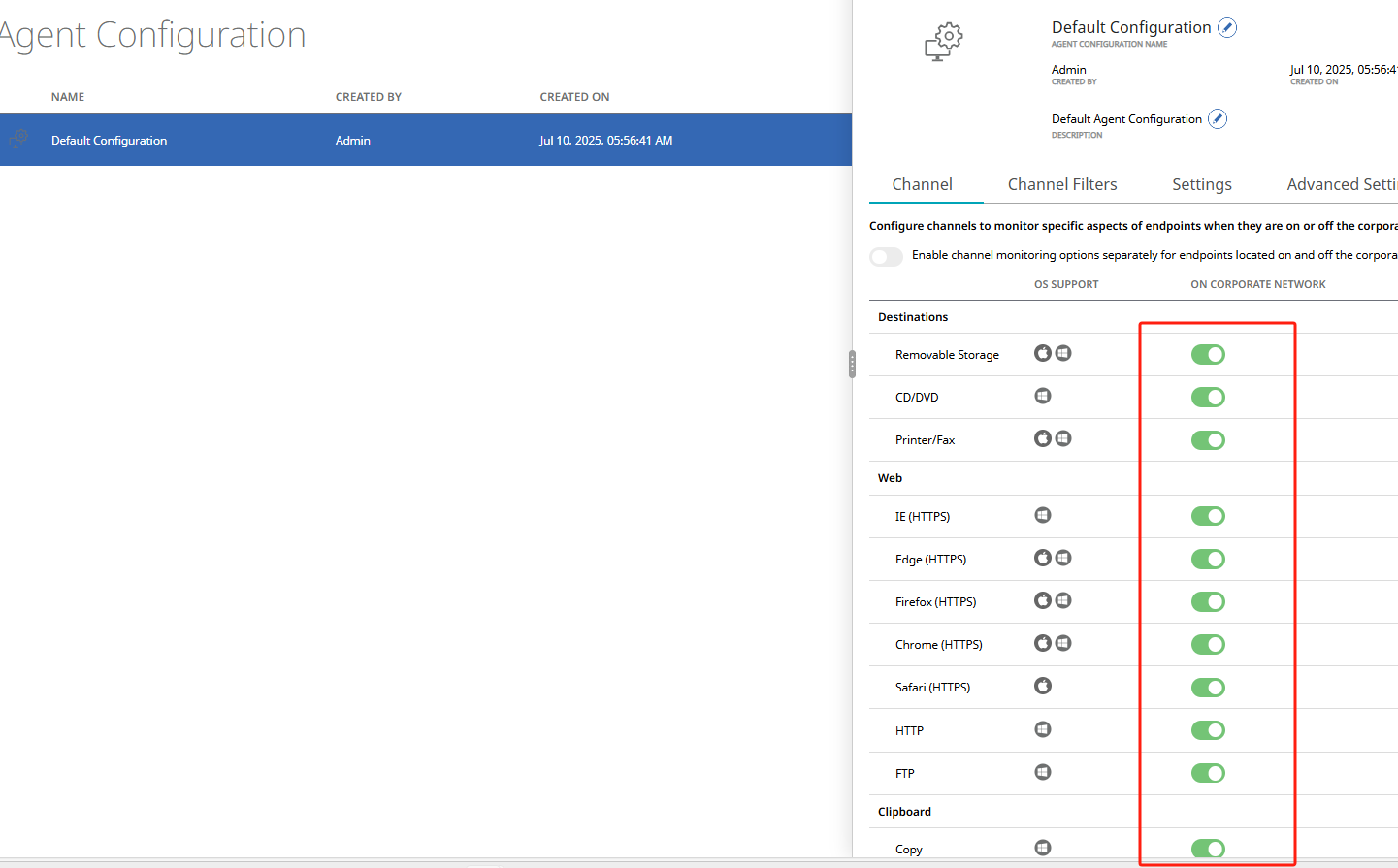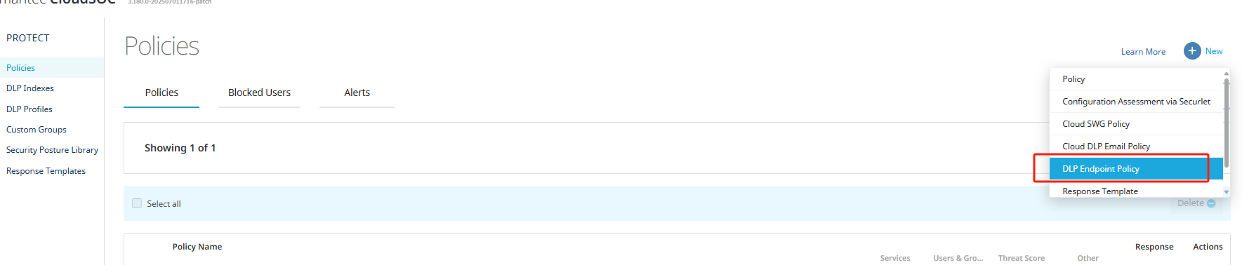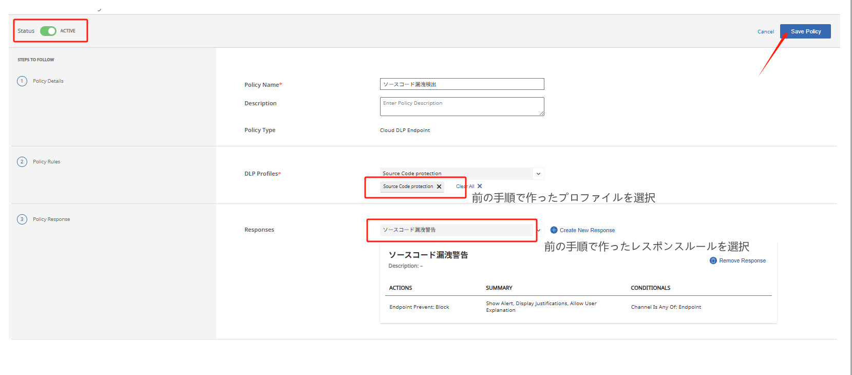 - 以下の方法で[DLP Endpoint Policy]編集画面をクリックします