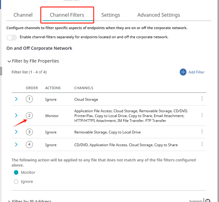 - [Channel Filters]をクリックし、[Monitor]を編集します