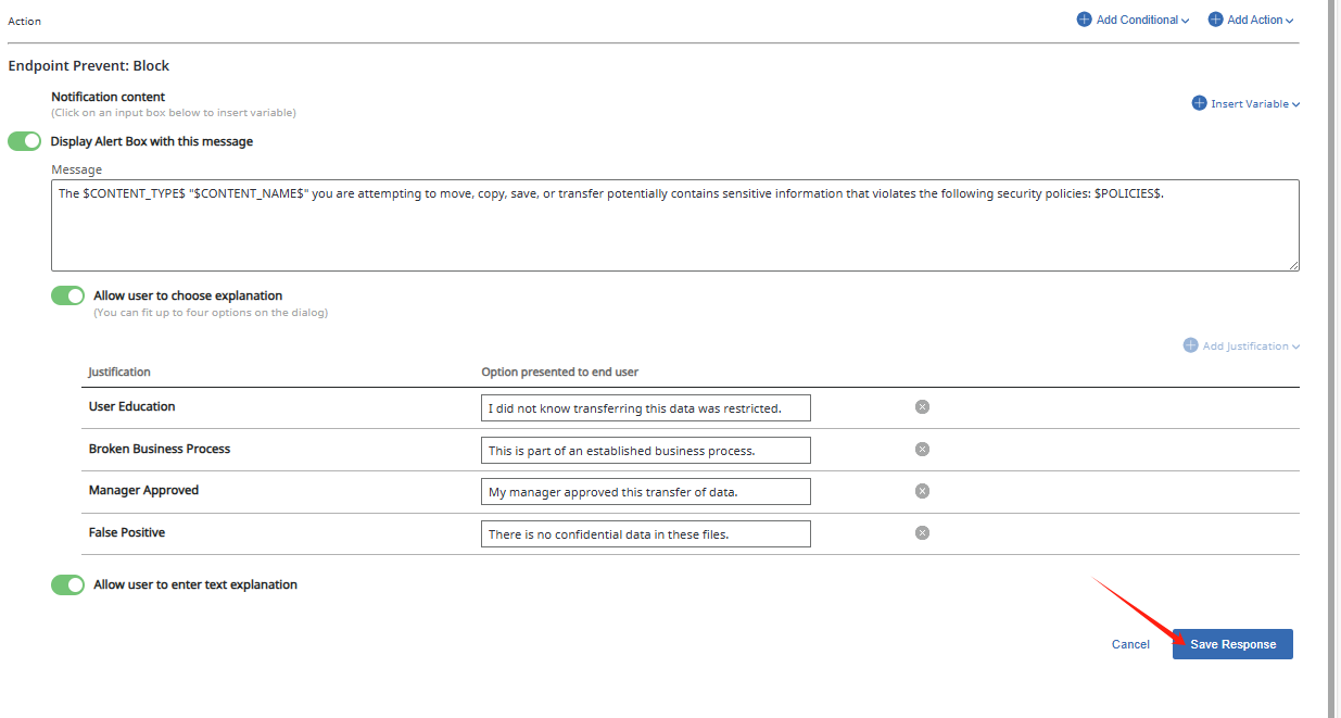- 名前を付けて、ブロックするか、警告するかを選択します。