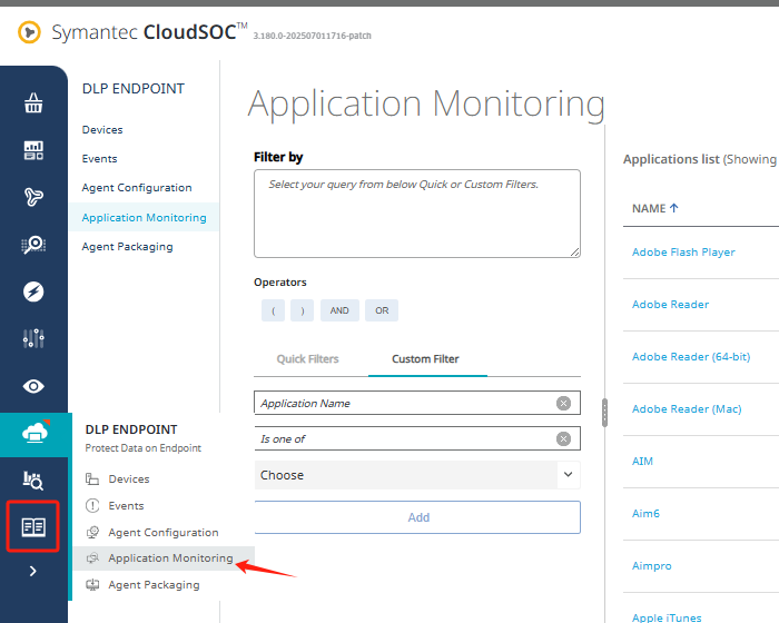 - 以下の順で[Application Monitoring]設定画面を開きます